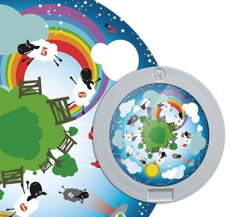 - 1 roue en couleurs "Compter les moutons": la roue tourne en continu dans le projecteur et projette ainsi une image en rotation sur le mur ou le plafond.